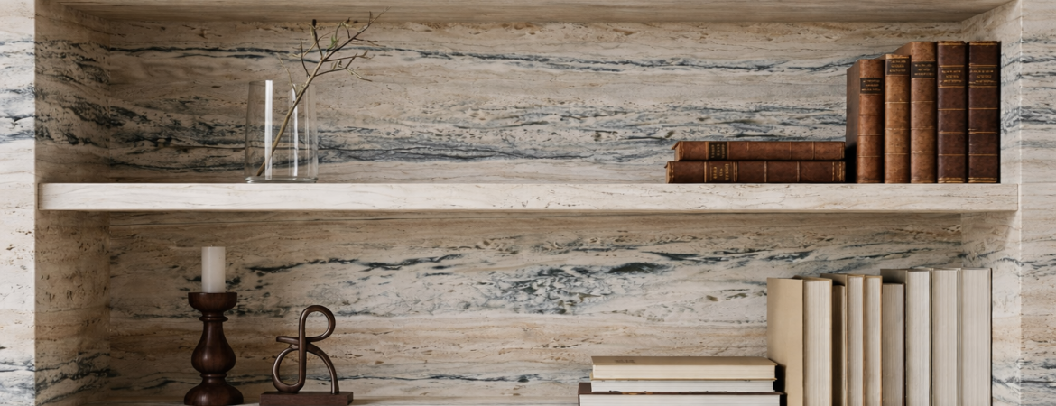 Marble and travertine slabs in modern lines in all colors and surface treatments.